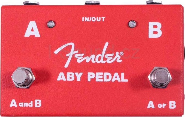 Pedál Fender ABY Footswitch - footswitch s pasivním přepínáním, umožňující připojit jeden nástroj do dvou zesilovačů, respektive dva nástroje do jednoho zesilovače. Zařízení je true bypass, díky čemuž ve vypnuté poloze neruší váš tón během hraní. Je vybaven dvěma spínači A and B, a A or B pro větší univerzálnost při hře. Konstrukce je vyrobena z odolného kovu. LED podsvícení je napájeno pomocí 9V baterie nebo napájecího zdroje (není součástí balení). Rozměry: 127mm x 83mm x 51mm.