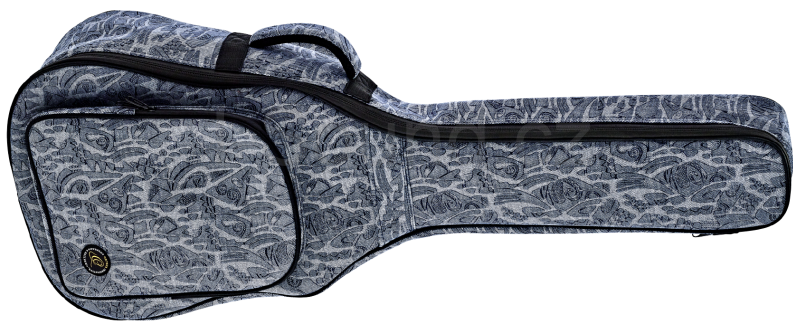 ORTEGA OGBAC-DN-BLJ - nová série džínových obalů od firmy Ortega na první pohled zaujme použitým materiálem – kombinace plátna a bavlny v denimové úpravě nejen skvěle vypadá, ale je také příkladně odolná. Uvnitř váš nástroj ochrání 12 milimetrů silné polstrování a podšívka z měkkého černého nylonu, součástí je také držák krku s bezpečnostními suchými zipy. Na vnější straně obalu se nachází rozměrná kapsa pro uložení příslušenství, dvojice pohodlných nastavitelných popruhů a spolehlivý systém zipů. Díky své velikosti je obal perfektní volbou pro akustickou kytaru typu Dreadnought a podobné.
